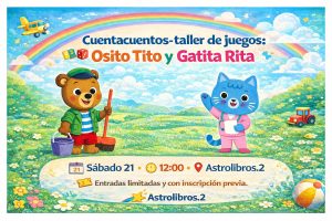 📖🎲 Cuentacuentos–taller de juegos: Osito Tito y Gatita Rita