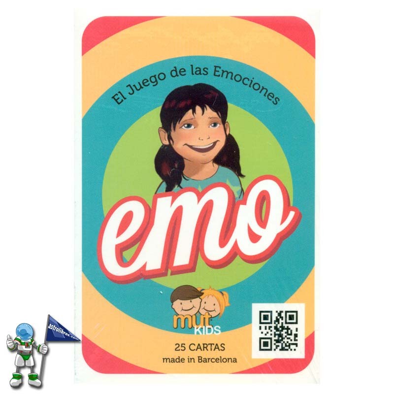 Juego de cartas sobre emociones. Un nuevo juego emocional, para seguir expresando las emociones jugando. El funcionamiento es sencillo: Mut Kids EMO se compone de 25 cartas con diversos y variados dibujos donde cada imagen muestra una emoción en concreto.