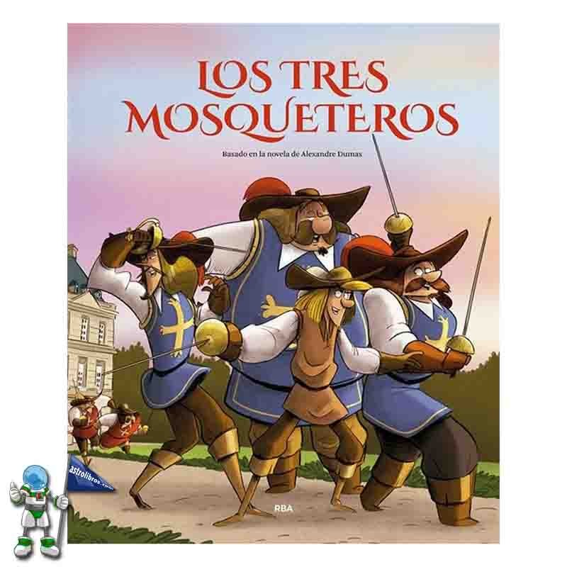 Libro infantil sobre los tres mosqueteros editado por RBA. El joven D'Artagnan persigue su sueño de convertirse en mosquetero del rey Luis XIII. Sin buscarlo, cuando llega a París, se hace amigo de un grupo de leales compañeros: Porthos, Athos y Aramis. con ellos combatirá a los enemigos de los reyes de Francia y a sus espías, al grito de "¡Todos para uno, uno para todos!".
