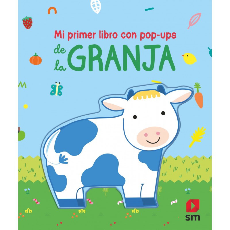 Un libro de tela con 3 pop-ups de animales de la granja que suenan al tocarlos.