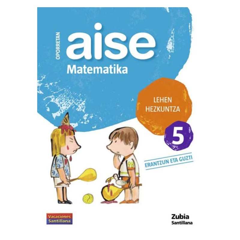Edición en euskera del cuaderno de verano de Santillana para repasar la asignatura de matemáticas de 5º curso.