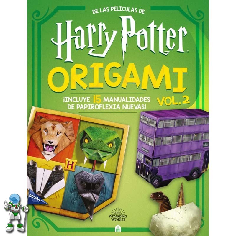 Podrás crear piezas de origami espectaculares, como el Ford Anglia volador o la cabaña de Hagrid, y también personajes conocidos, como elfos domésticos, dementores o la rata Scabbers. Además, ¡podrás hacerte tu propio escudo de Hogwarts! El libro también cuenta con fotos a color y hojas especiales para hacer tus origami.