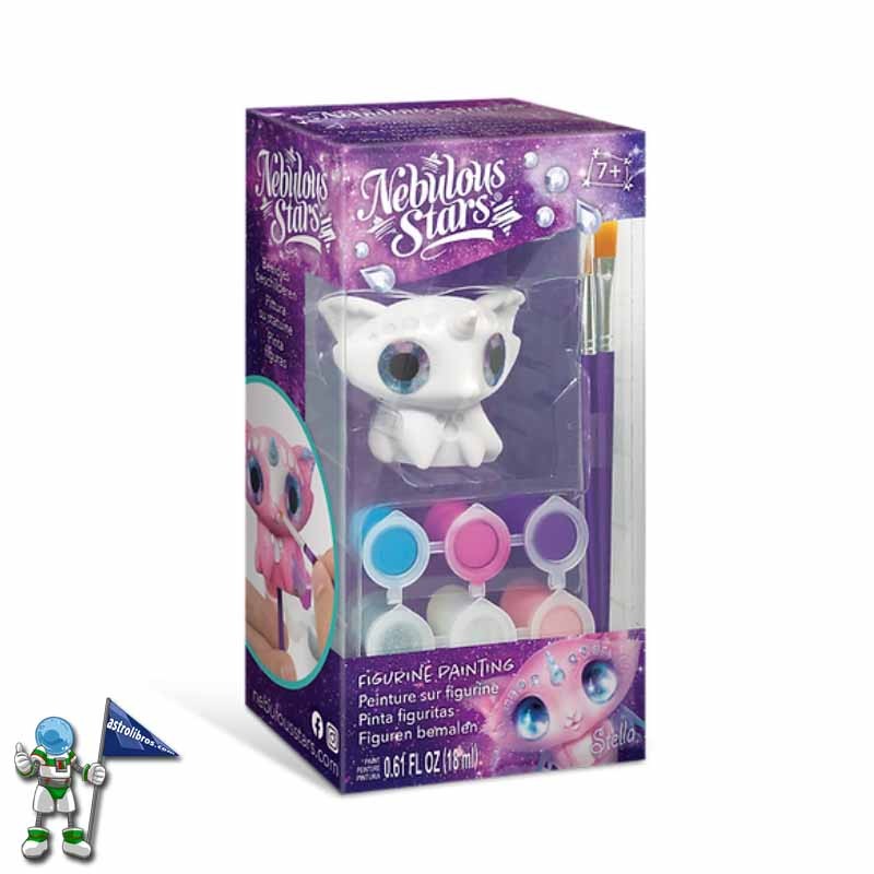 Gure Nebulous Starseko lagunik onenak. Margotu eta bildu bere begi distiratsuekin begiratuko dizuten 6 izaki fantastiko hauek. Stella koloreztatzeko eskulan dibertigarria. Kutxan: margotzeko figuratxoa, pintura akrilikoaren 5 kolore, purpurinazko berniza, 2 pintzel, plastikozko zotza, imitaziozko diamanteak, jarraibideak.