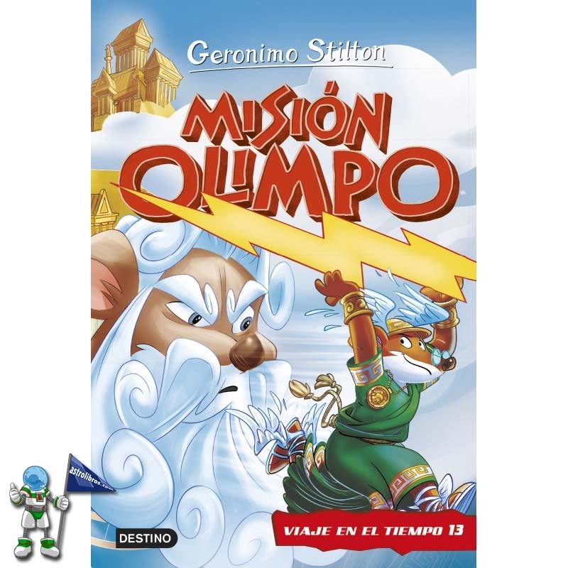 ¡La historia más mítica de Geronimo Stilton! Queridos amigos roedores, seguidme en este extraordinario viaje en el tiempo… A bordo del Tiovivo del Mito, el nuevo invento de Fisgogenio Quesoso, llegaremos al Olimpo, la mítica morada de los dioses. Por desgracia, nuestra presencia no resultará muy grata y ¡los dioses harán de todo para librarse de nosotros! La única posibilidad de salvarnos será superar cuatro pruebas dificilísimas, elegidas precisamente por los habitantes del Olimpo. ¡Qué trepidante aventura! ¡Viaja a la época de los dioses griegos con Geronimo Stilton! Libro muy ilustrado y con ilustraciones que atraerá a cualquier lector. Libro recomendado a partir de 8 años.