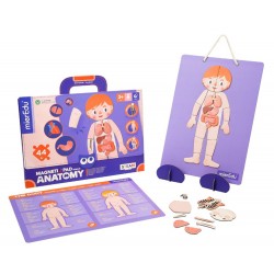 Incluye 2 tableros y 44 imanes, además de un poster cin partes del cuerpo, órganos y esqueleto en diferetes idiomas.