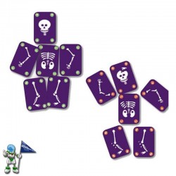 Juego de cartas que brilla en la oscuridad. Con BOGOSS de DJECO tendrás que montar tu esqueleto consiguiendo todas las cartas de huesos que necesites pero... ¡cuidado! No montes el esqueleto con huesos rotos o perderás.