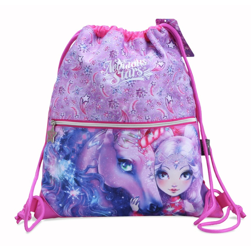 Este hermoso y ligero bolso de mano, con bolsillo frontal con cremallera y cordones, es muy conveniente para llevar sus zapatos o ropa deportiva.