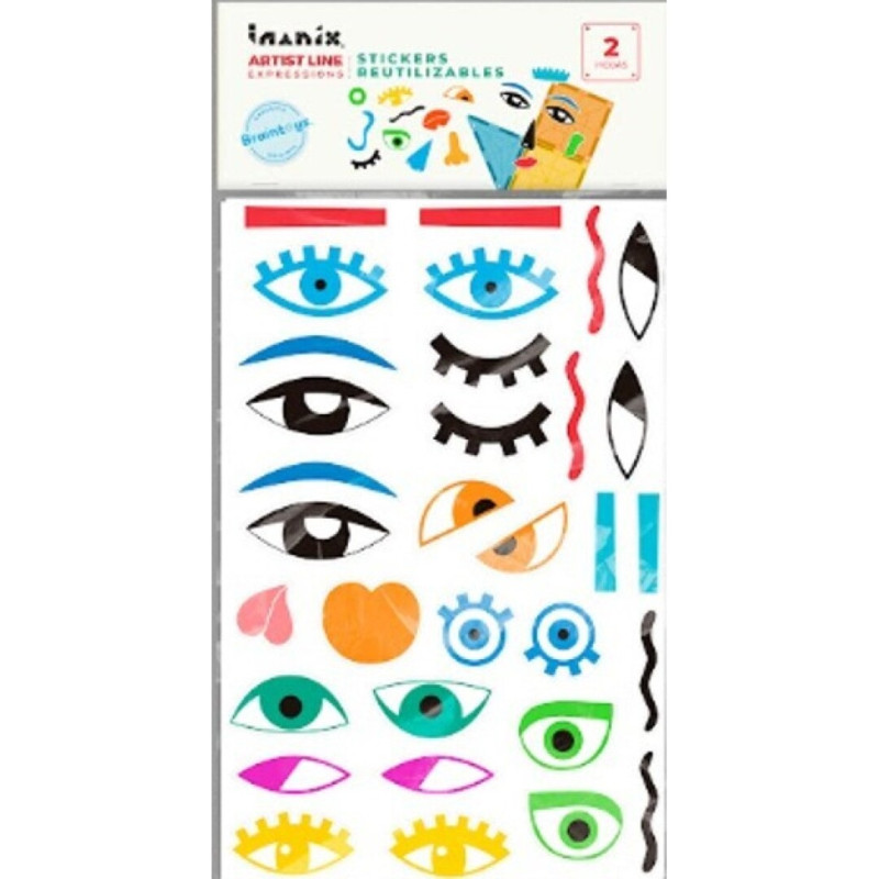 Set con 3 láminas de stickers de silicona reutilizables con multitud de expresiones para darle vida a las piezas de Imanix.Edad: +3