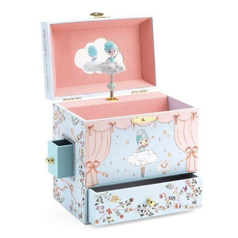 Caja de música bailarina en escena, juguete djeco.