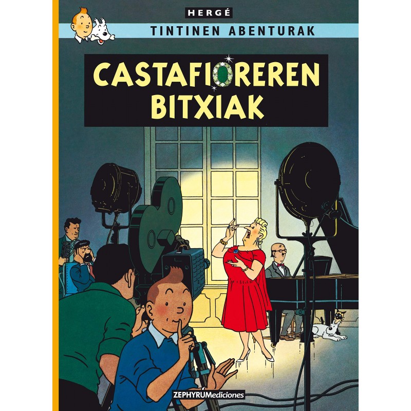Edición en euskera del cómic de Tintín "Las joyas de la Castafiore". Traducción nueva y actualizada. La Castafiore anuncia su llegada a Moulinsart, y el capitán intenta huir de viaje a toda prisa, pero tropieza con un escalón roto que aún no han venido a arreglar y se rompe los ligamentos. Nace el rumor de una relación sentimental entre la cantante y el "viejo lobo de mar" y se llena todo de paparazzis. Y desaparecen las joyas... En este álbum no hay viajes ni grandes aventuras, y ahí está la gracia de Hergé para conseguir mantener la intriga. Toda la acción sucede en Moulinsart, dentro y en los jardines y alrededores del castillo.