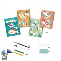 Collage cuadros de perlas zoología, manualidades Djeco.