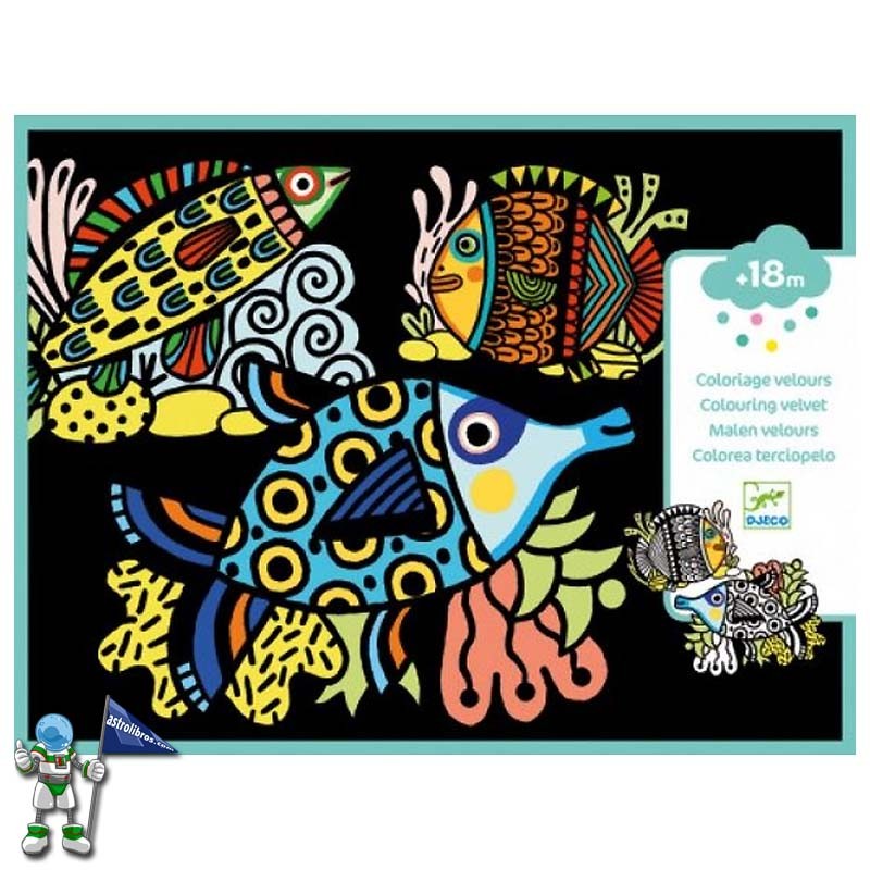 Láminas de terciopelo para colorear de forma fácil con motivos marinos, de grandes peces.