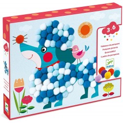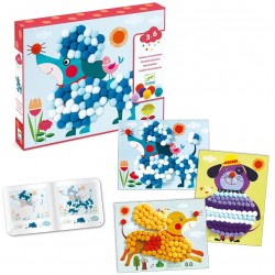 Este kit de manualidades Djeco, contiene diferentes láminas de perros para decorar con los pompones correspondientes.