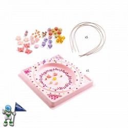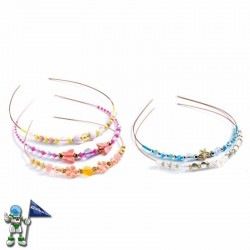 Un kit de manualidades para crear diademas para el pelo. Pega e introduce en la base los abalorios y crea tus propios diseños de moda para el pelo.