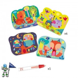 ¡Colorea por arte de magia! Láminas de pintar con agua de DJECO. Tan sólo tendrás que rellenar el rotulador mágico con agua, y al pasarlo por las láminas los colores aparecerán por arte de magia. Es genial para estimular la creatividad y las habilidades motoras. No mancha porque tan sólo necesita agua y una vez las láminas se secan se va el color y podrán volver a utilizarlas.