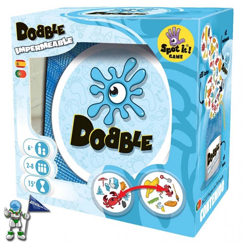 Dobble Waterproof es una nueva versión de este juego de cartas super ventas, ahora con un nuevo diseño que te permitirá alargar las horas de diversión en la playa o en la piscina, ¡gracias a sus cartas resistentes al agua y su cómoda bolsa de transporte!