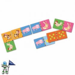 Dominó para niños y niñas. Un divertido dominó con imágenes de animales que nos ayuda a aprender a contar, a desarrollar una estrategia y a respetar los turnos. El clásico juego de dominó presentado de una manera divertida e infantil.