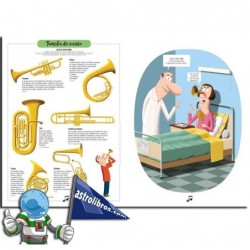 Todo acompañado por viñetas humorísticas relacionadas con la música.