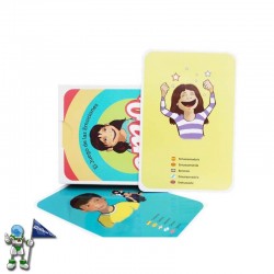 Juego de cartas sobre emociones. Un nuevo juego emocional, para seguir expresando las emociones jugando. El funcionamiento es sencillo: Mut Kids EMO se compone de 25 cartas con diversos y variados dibujos donde cada imagen muestra una emoción en concreto.