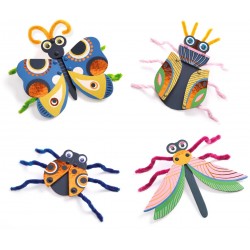 Contenido: 5 láminas ilustradas de cartón grueso, 12 hilos gruesos de felpilla, 16 encuadernadores, 8 ojos grandes móviles y 1 manual con los pasos.