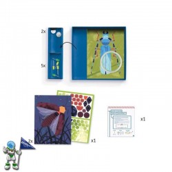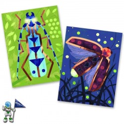 Caja de manualidades y circuito eléctrico para niños. Una original caja de manualidades para construir un circuito eléctrico para que se iluminen las bombillas led. El niño deberá colocar el adhesivo conductor para conseguir iluminar los ojos de los insectos cuando activemos el interruptor. Esta original manualidad une la creatividad con el ingenio y la curiosidad. Es una manera fácil y didáctica para acercar la tecnología a los más pequeños.