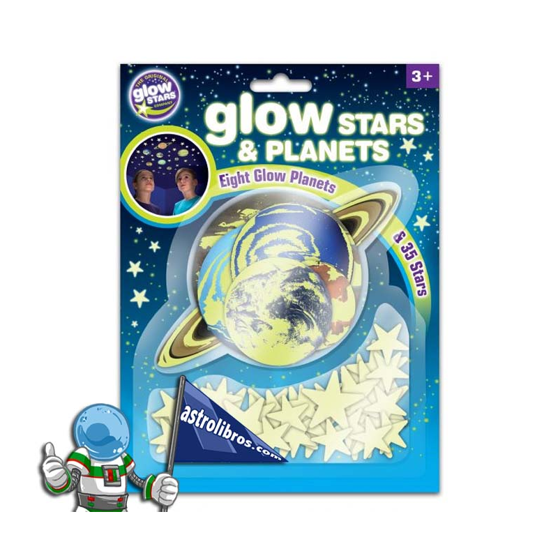 Pack con los 8 planetas y estrellas de diferentes tamaños, con etiquetas auto-adhesivas para que puedas decorar tu cuarto o lugar preferido. ¡Es muy bonito ver como brilla en la oscuridad!