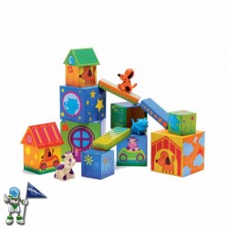 Juego de cubos apilables con animales. Un juego clásico de DJECO en el que el bebé deberá apilar los cubos creando diferentes circuitos por los que los animalitos de goma pasarán. Un juego interactivo muy útil para aprender colores, tamaños, motricidad fina y equilibrio. Además de los cubos apilables, también hay escaleras para crear pasadizos. Incluye 14 cubos y 3 animales.