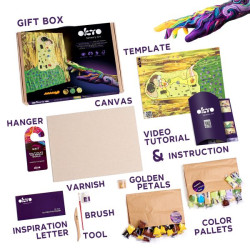 Incluye colores Air Clay, lienzo natural 30 x 40 cm, instrucciones paso a paso con imágenes y video-tutorial, herramientas para modelar, barniz acrílico 20 ml, pincel, accesorios experiencia sensory art & relax.