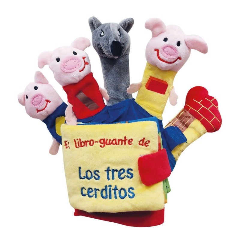 Libro guante para dar vida a las historias, en este caso el cuento abreviado de Los tres cerditos y el lobo.