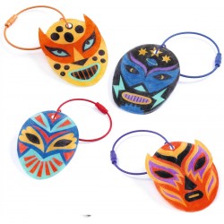 ¡Este kit de manualidades Djeco invita al niño a crear cinco llaveros de colores que representan máscaras de luchador mexicano de plástico retráctil!