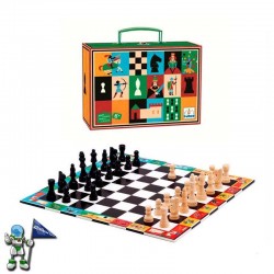 Maletín original con el juego de las damas y el ajedrez. Original caja de DJECO con juegos clásicos en formato infantil.