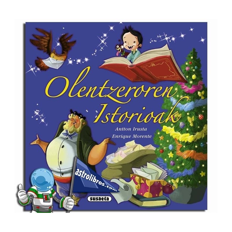 Edición en euskera del libro de la editorial Susaeta con diferentes historias protagonizadas por el Olentzero, carbonero que reparte los regalos a los niños del País Vasco la noche de Nochebuena.