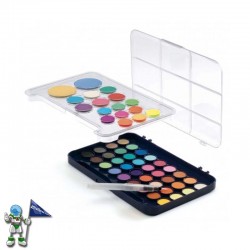 Contiene: doble paleta con bandeja desmontable, 53 tonos de acuarela, pincel y depósito de agua.