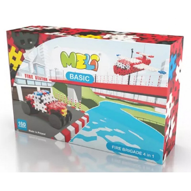 ¿Quién no quiere convertirse en bombero? Los 160 bloques que contiene este set de construcción Meli permitirán a tu hijo construir hasta cuatro vehículos de emergencia.