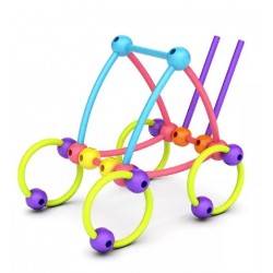 Meli Stik son palitos flexibles hechos de plástico blando y completamente seguros que se pueden unir entre sí utilizando unas canicas especiales. Cada canica tiene 6 agujeros para unir las piezas en varios ángulos, lo que permite crear estructuras increíbles.