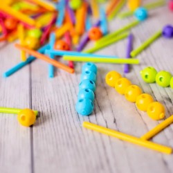 Meli Stik son palitos flexibles hechos de plástico blando y completamente seguros que se pueden unir entre sí utilizando unas canicas especiales. Cada canica tiene 6 agujeros para unir las piezas en varios ángulos, lo que permite crear estructuras increíbles.