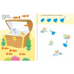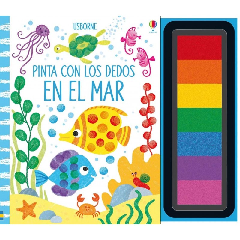 Este bonito libro de actividades incluye un panel lateral con tinta de siete colores y cantidad de ideas para pintar con los dedos.