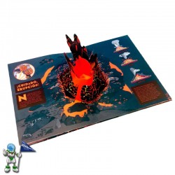 Libro Pop-up sobre volcanes editado por Edelvives. ¡Cuidado al abrir este libro! ¡Los volcanes rugen y están listos para explotar! Podrás asistir a espectaculares erupciones, retroceder en el tiempo para visitar Pompeya, conocer el oficio de vulcanólogo y descubrir las leyendas acerca de la cólera de la Tierra, desde Hawái hasta Japón.