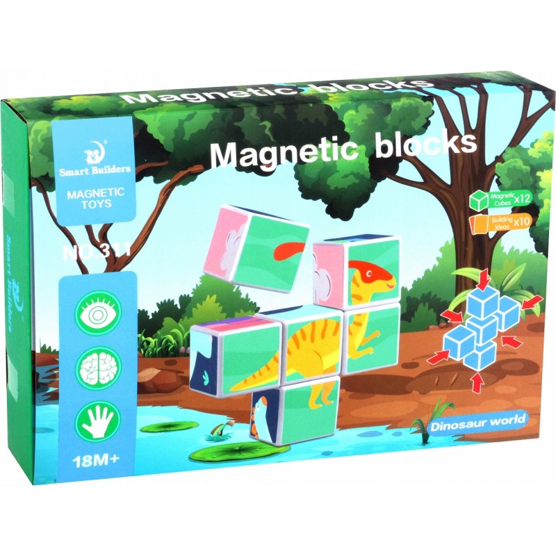 Puzzle cubos magnéticos 12 piezas dinosaurios.