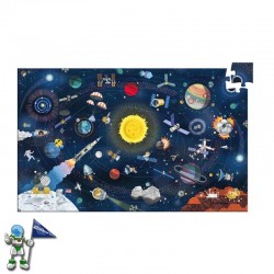 Puzzle + buscar y encontrar de temática el espacio, 200 piezas de DJECO. Monta el puzzle y busca y encuentra dentro de la ilustración todos los objetos que aparecen en el marco blanco del puzzle.