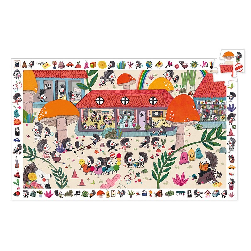 Puzzle de observación 35 piezas Djeco, la escuela de erizos.