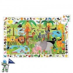 Puzzle de animales de 35 piezas con juego de buscar y encontrar. Monta el precioso puzzle y busca las imágenes que aparecen en el marco blanco dentro de la ilustración.