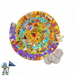 Puzzle de 350 piezas de la historia. Diferentes épocas, personajes y acontecimientos de nuestra historia recogidos en un puzzle. Una vez montes este puzzle circular, busca y encuentra los dibujos que aparecen en las tarjetas, el más rápido ganará.