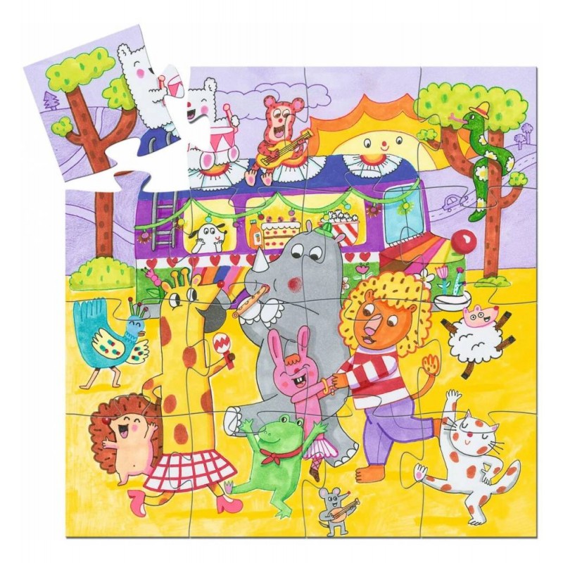 Puzzle silueta Djeco 16 piezas, el autobús arcoiris.