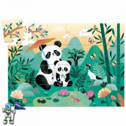 Precioso puzzle de 24 piezas de un osito manda y su mamá o papá. La caja del puzzle tiene silueta de oso panda y queda genial para decorar cualquier estancia.