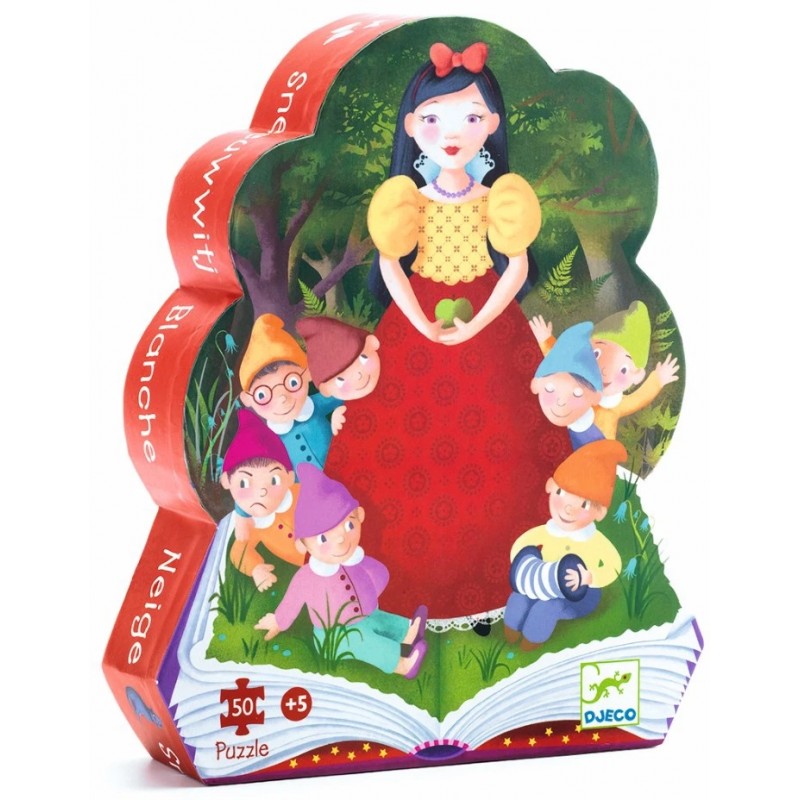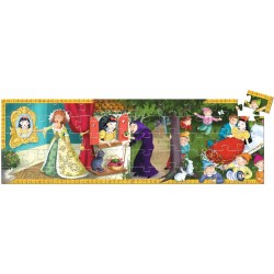 El niño monta un puzle con forma de cenefa para descubrir el famoso cuento de Blancanieves. Este magnífico puzle de 50 piezas se presenta en una bonita caja con silueta decorativa para la habitación del niño.