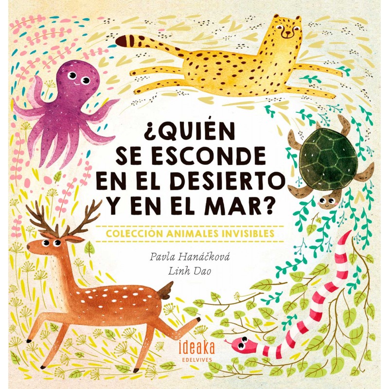 Los animales son expertos en el arte del camuflaje. A veces lo hacen por timidez; otras para ocultarse de posibles agresores, y en muchas ocasiones para acechar a una presa. Con esta colección de libros con solapas los lectores descubrirán las estrategias que permiten a los animales esconderse y hacerse «invisibles». Lo hace mediante una página con curiosidades sobre sus mecanismos de camuflaje y una animación (generada por un mecanismo de solapa) que permite ver cómo se vuelven «invisibles» en su entorno. Especies incluidas: guepardos, ciervos, tortugas marinas, pulpos y serpientes. Libro recomendado para niños y niñas a partir de 4 años.