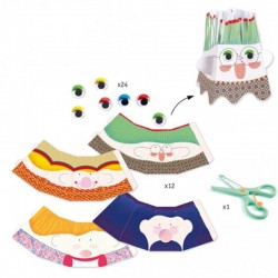 Incluye 12 plantillas para crear personajes, 1 tijera infantil y pegatinas para dar personalidad a los muñecos de papel.