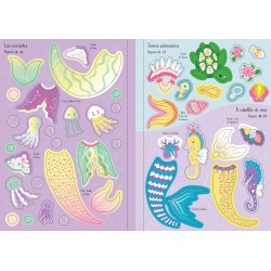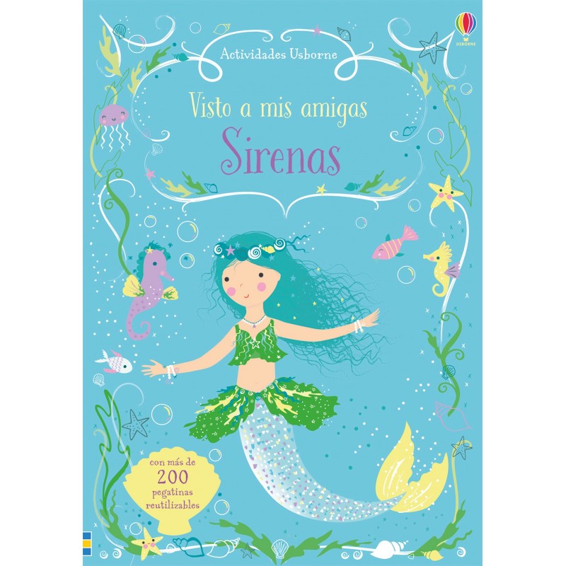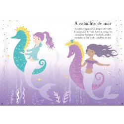 Los pequeños podrán pegar y despegar hasta dar con los mejores atuendos para las sirenas, así como decorar una y otra vez las escenas de cada página con peces, estrellas de mar y un sinfín de bonitos detalles submarinos.
