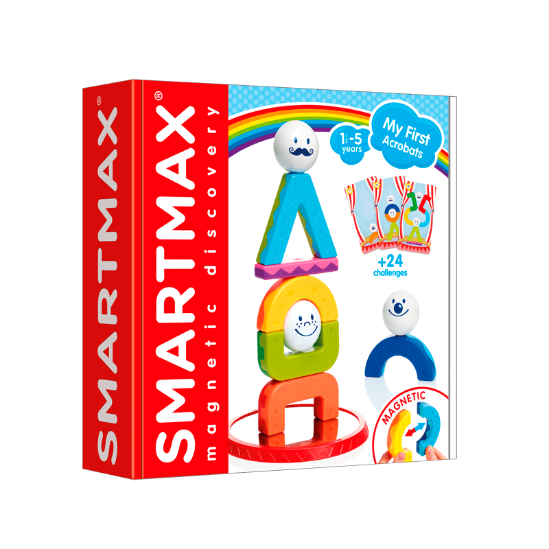 My First Acrobats tiene 24 retos de construcción. Con figuras magnéticas 100% compatibles con otros productos SMARTMAX®.